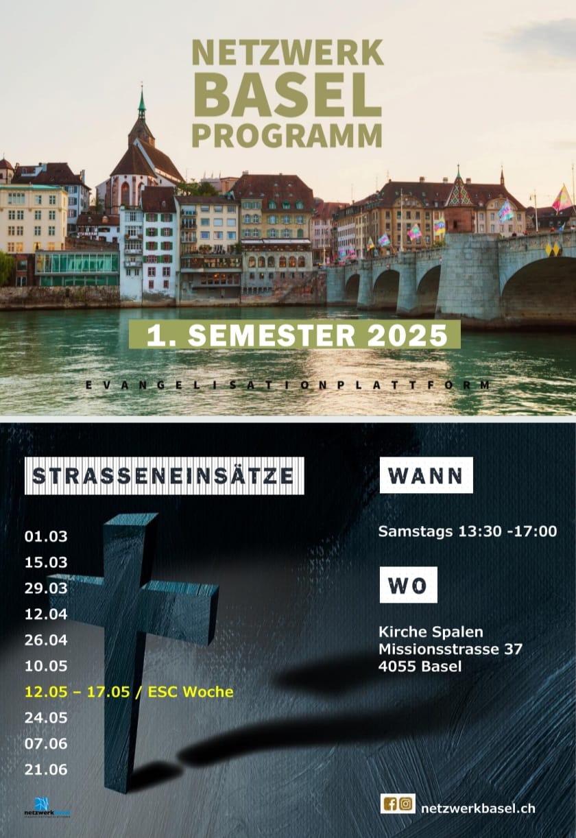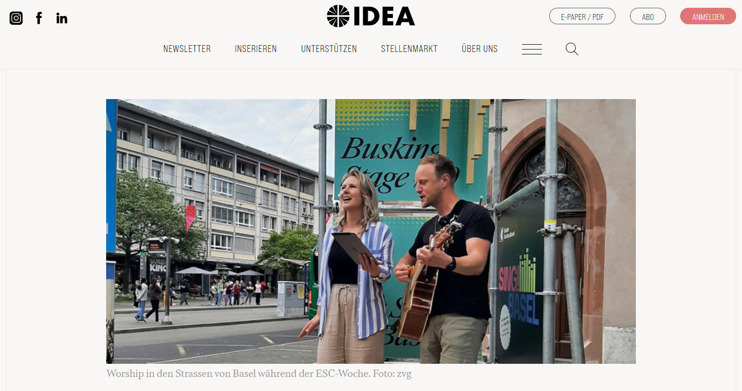 "Die ESC-Woche in Basel war mehr als nur ein internationales Musikereignis: Sie wurde zu einem Ort göttlicher Begegnung. Bereits im Vorfeld hatte die Evangelische Allianz Basel zu einem runden Tisch eingeladen, um die Möglichkeiten einer gemeinsamen Evangelisation zu diskutieren. Das Ziel war es, Menschen während des Eurovision Song Contests auf Augenhöhe und in der Liebe Gottes zu begegnen. Diese Vision wurde nicht nur geplant, sondern auch mit Leidenschaft, Kreativität und Einheit gelebt." ...